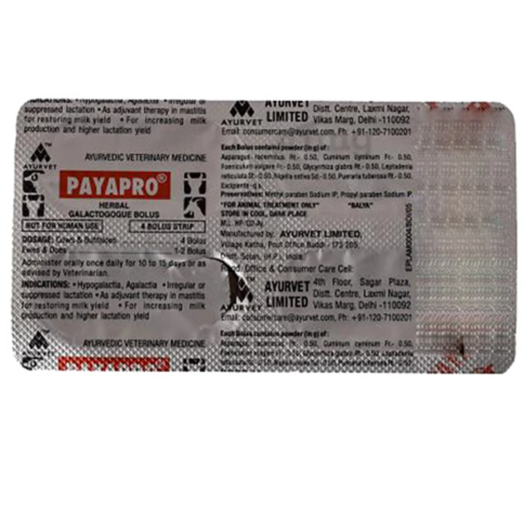 #PAYAPRO #MilkBoosterBolus #LactationSupport #GalactopoieticHerbs #DairyMilkEnhancer #NonHormonalLactationAid #NaturalMilkProduction #AnimalLactationCare #ShatavariBolus #KalonjiForLactation #JeeraDigestiveAid #JivantiForMilk #VeterinaryLactationBolus #MilkLetdownSupport #HerbalLactationRemedy #MastitisRecoveryBolus #OptimalMilkYield #LivestockHealth #DairyFarmCare #HighYieldDairySupport #NaturalUdderCare #VeterinarySupplements #DairyAnimalCare #MilkProductionBoost #AyurvetBolus