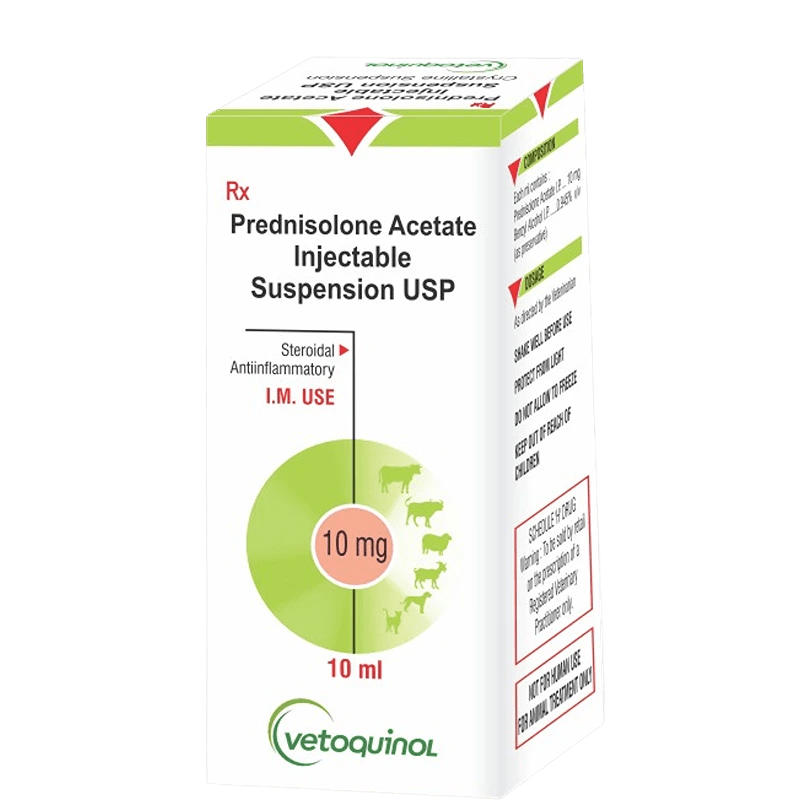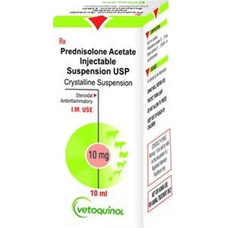 Description: Prednisolone Injection is a vital solution for combating primary ketosis in dairy cattle and rheumatoid arthritis in cattle, horses, and dogs. This product comes in a convenient 10 ml vial.